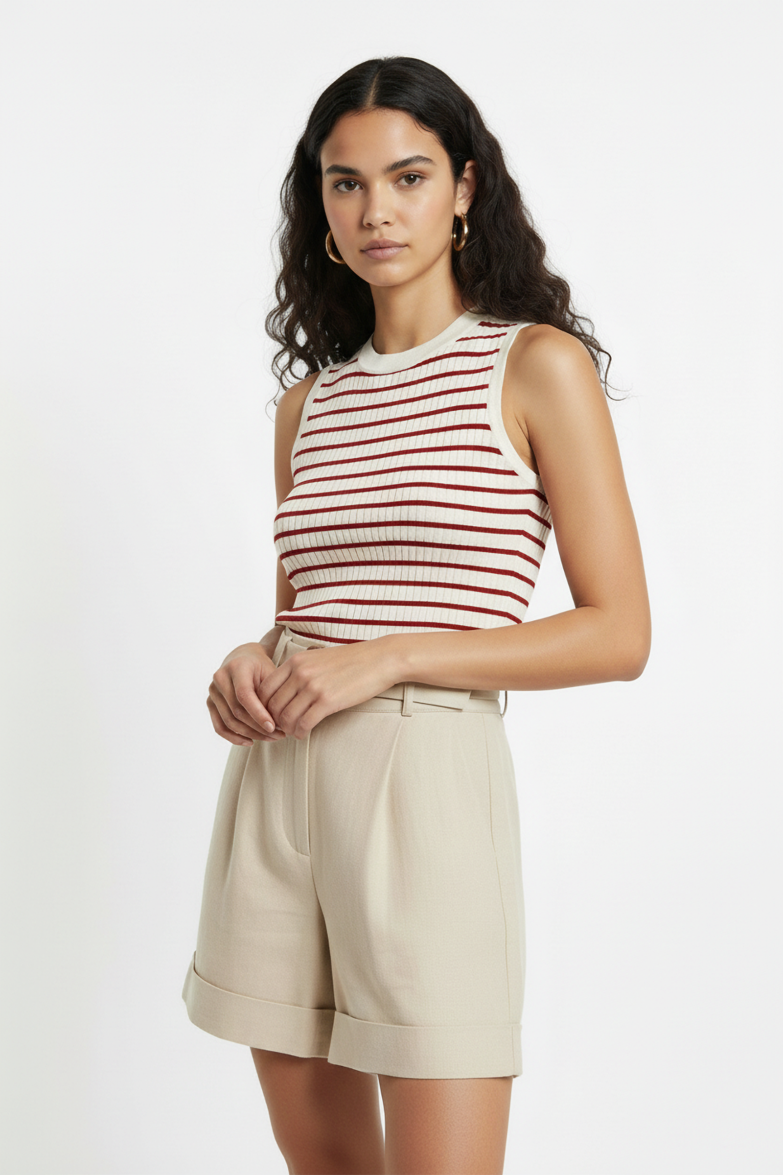 Striped knit vest in red