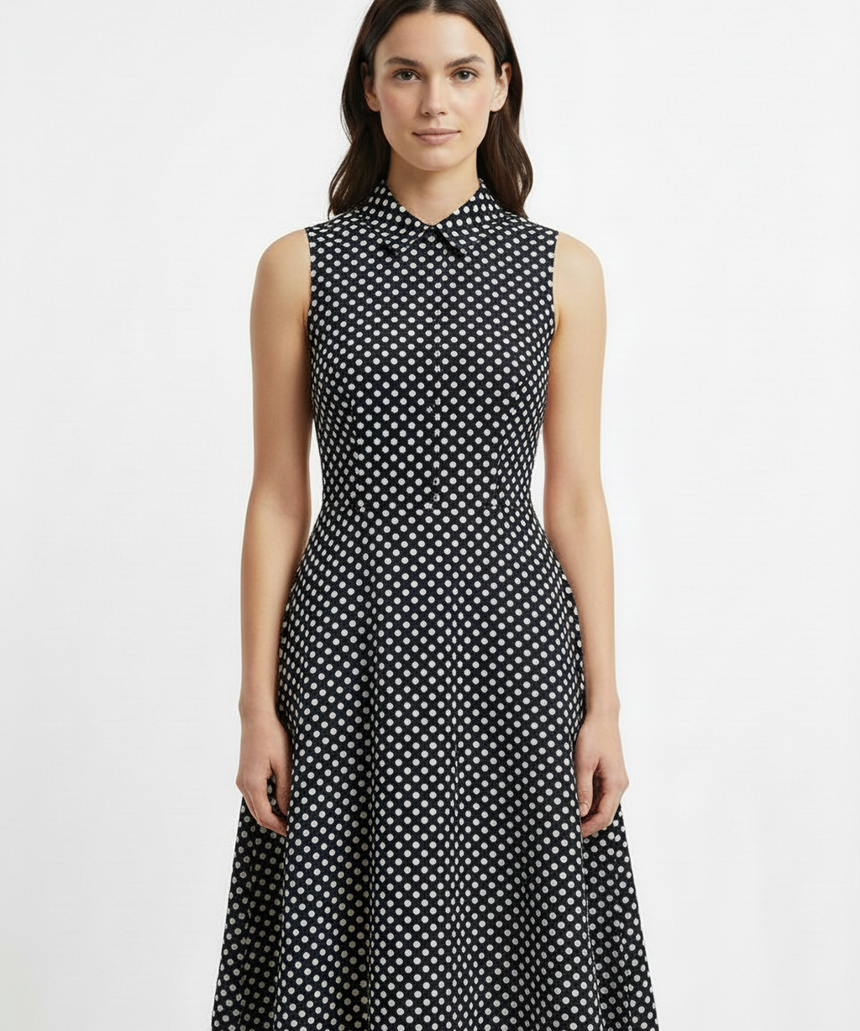 Polka dot day dress in navy
