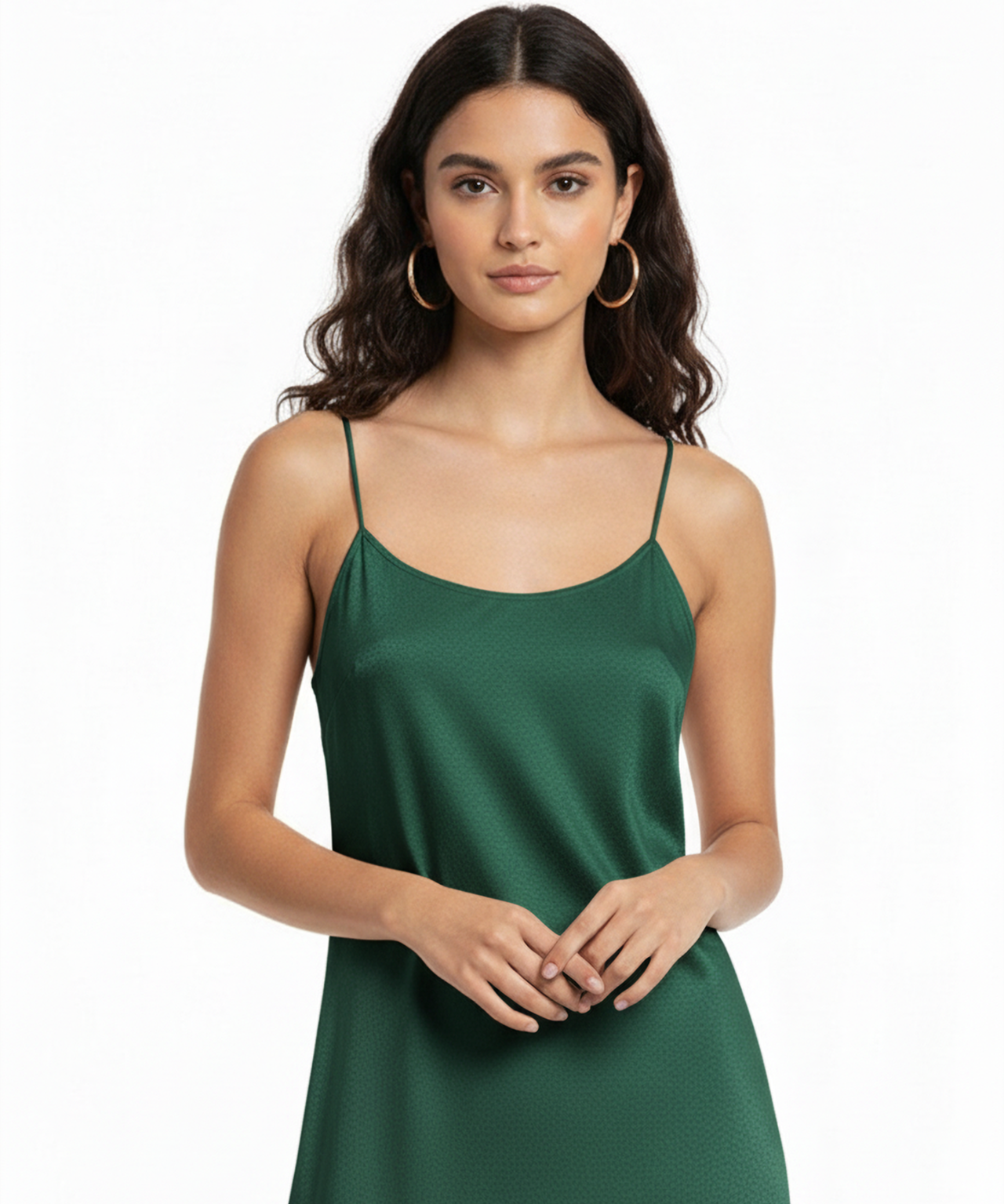 Classic silk slip dress in emerald