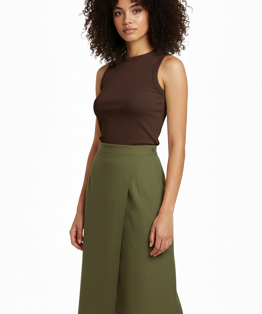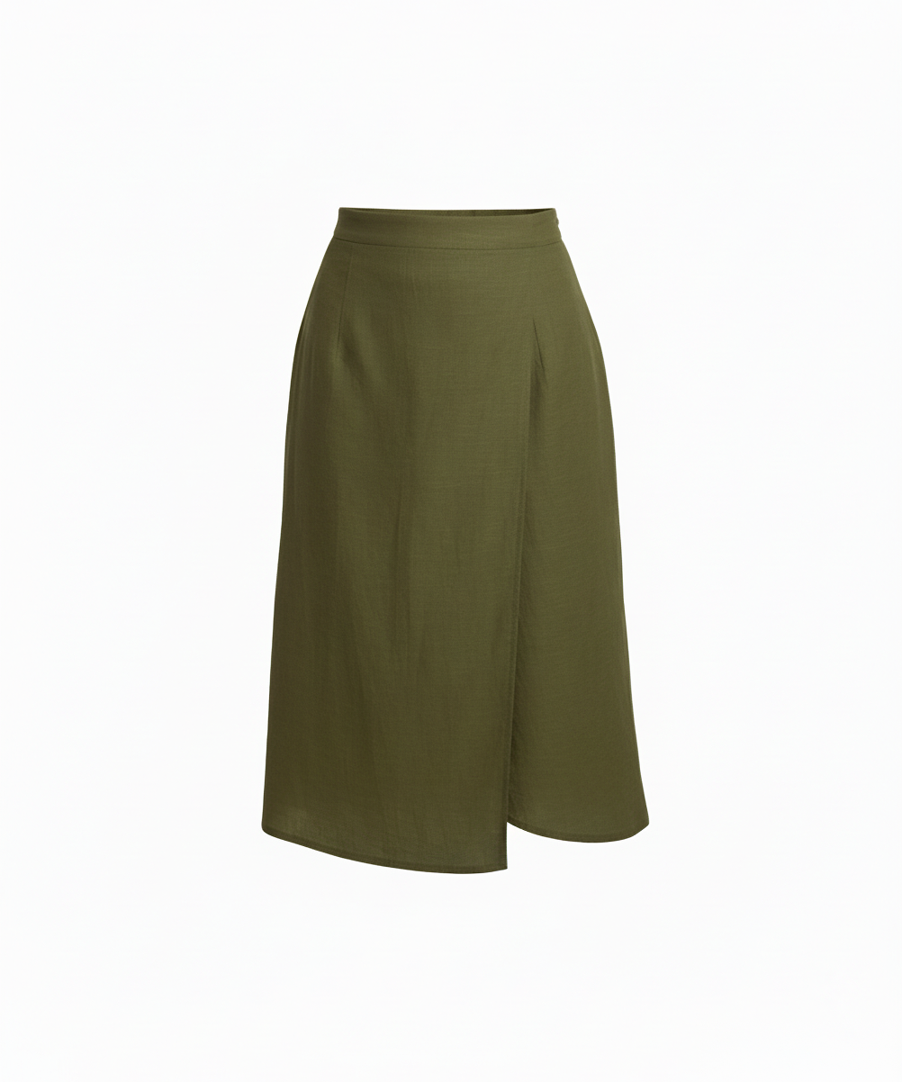 Bias wrap skirt in olive