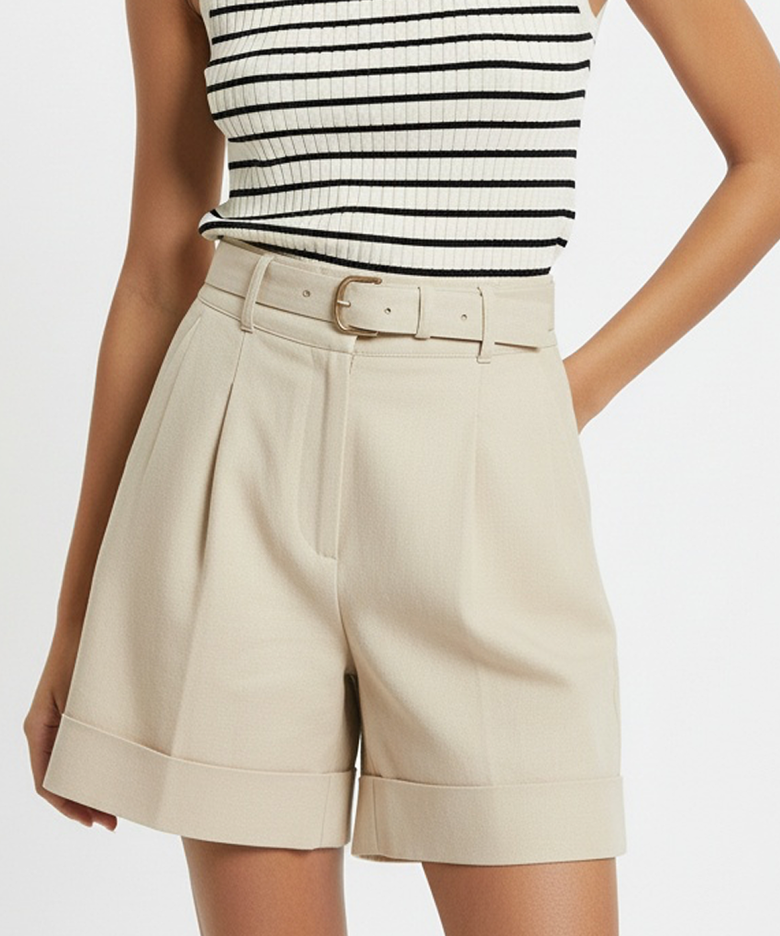 Belted short in beige