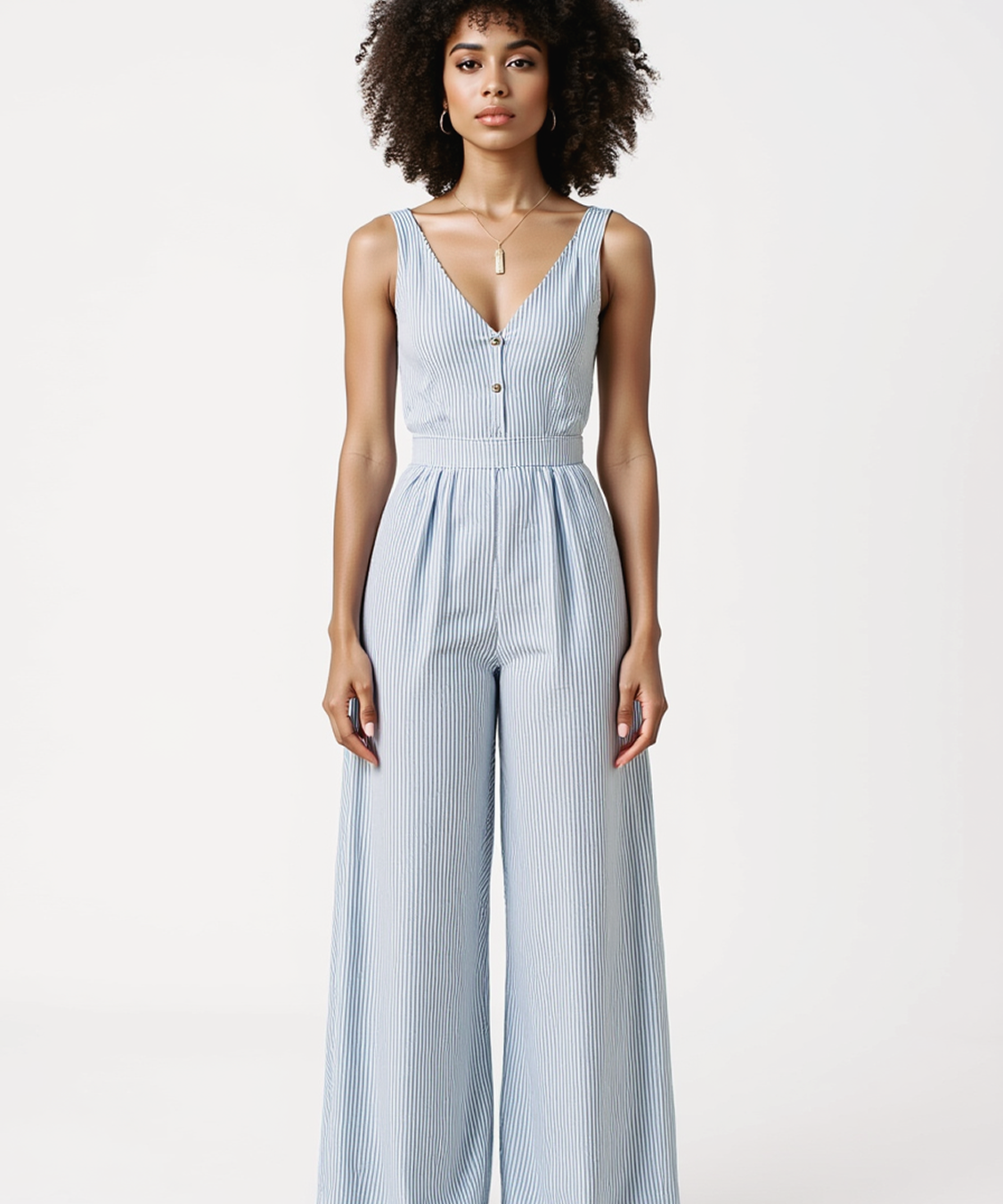 Striped jumpsuit in light blue