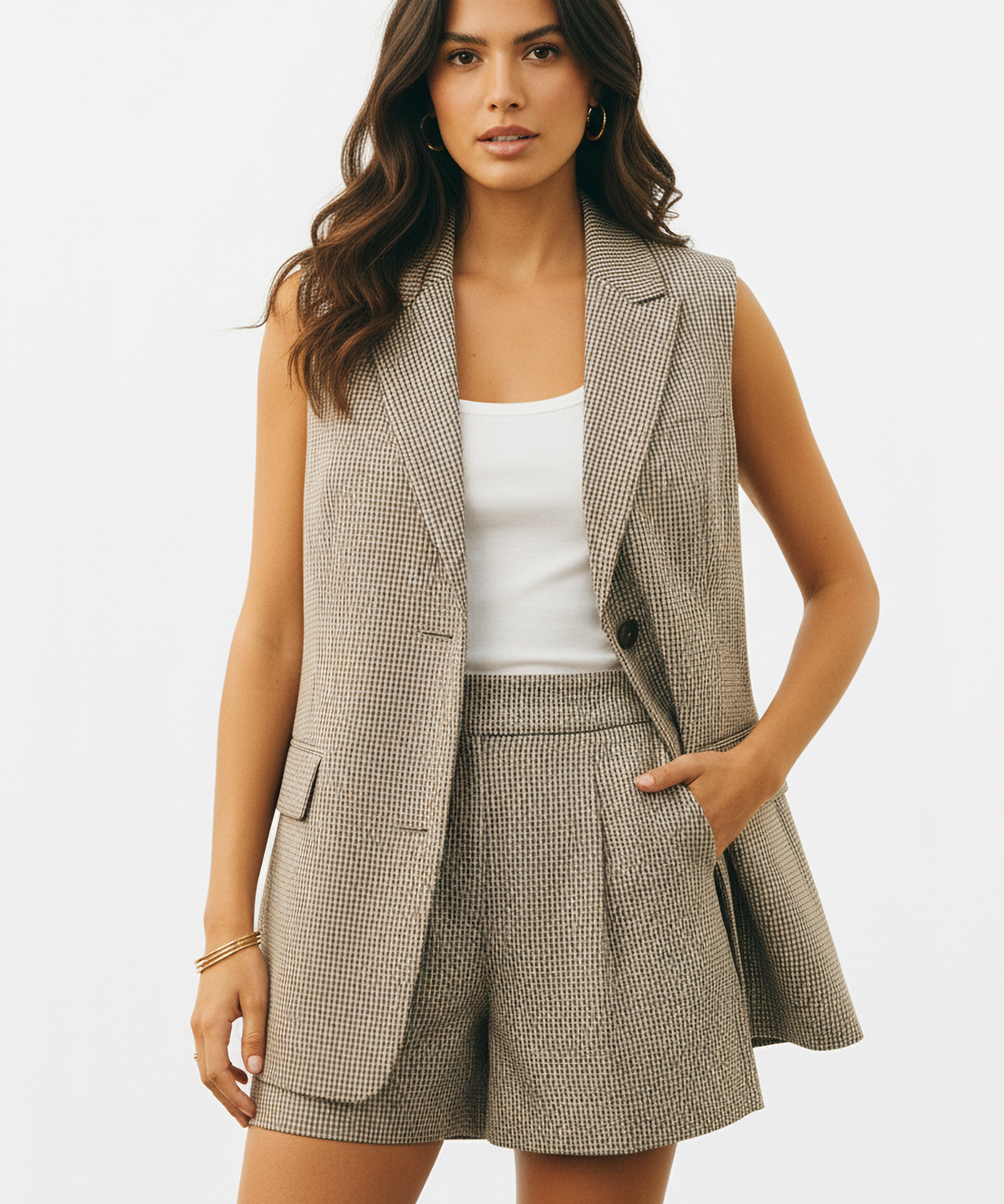 Oversized suit vest in tan