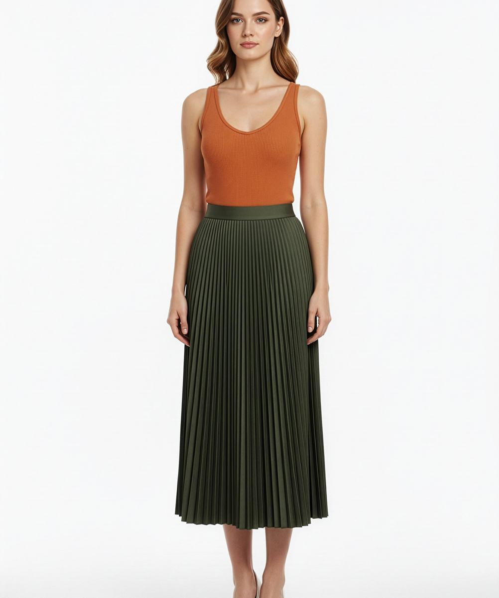 Pleated skirt in olive
