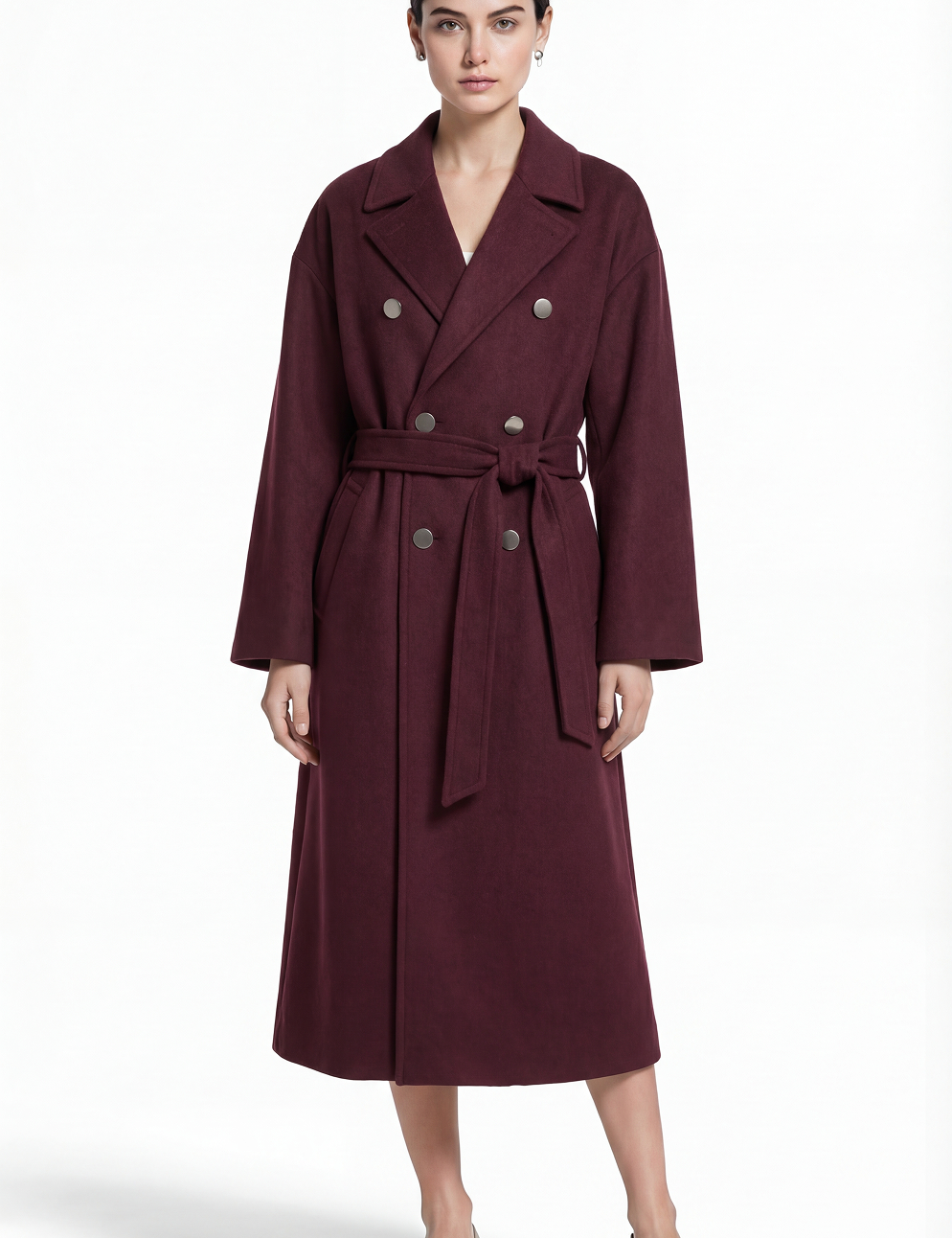 Wool trench in maroon