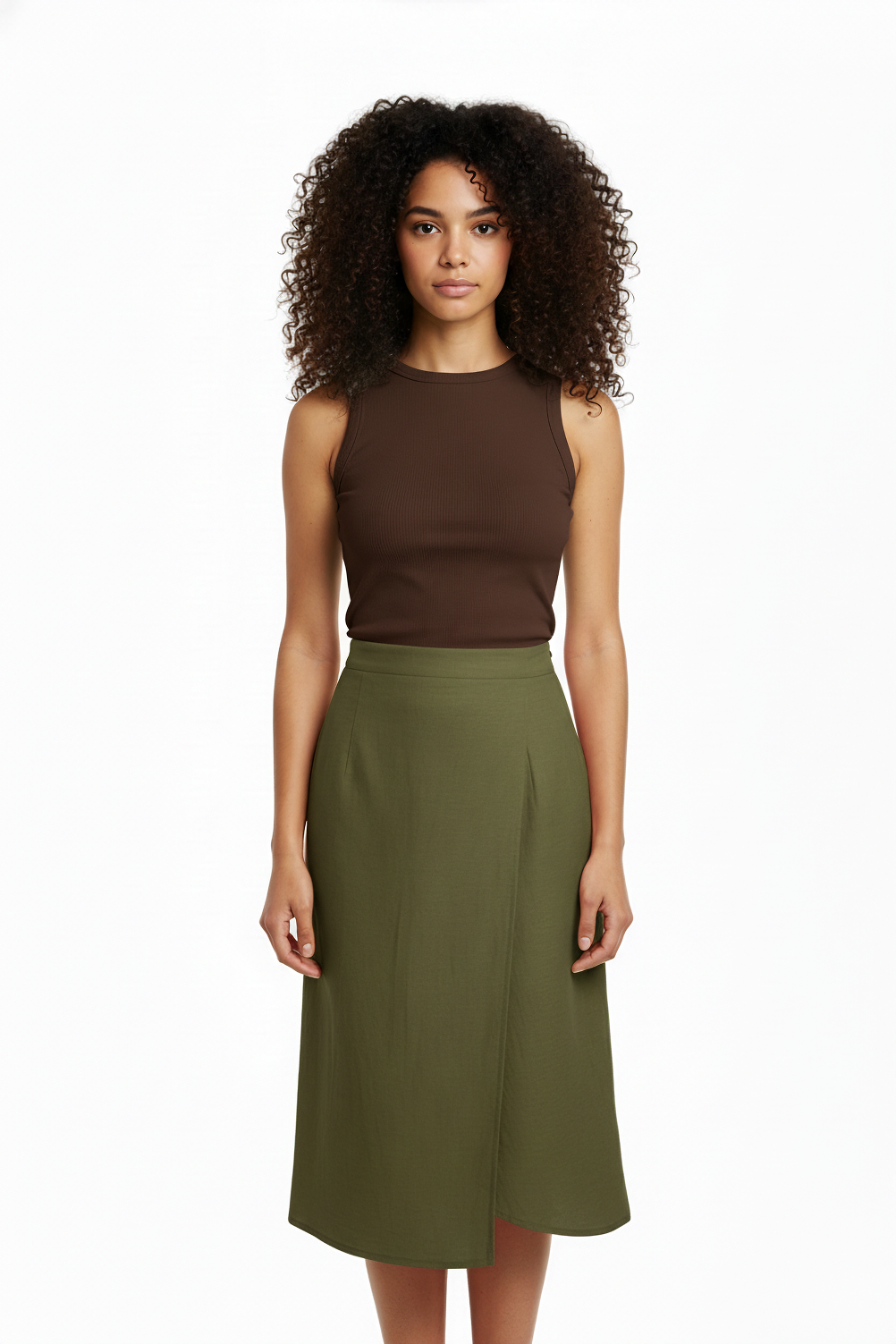 Bias wrap skirt in olive