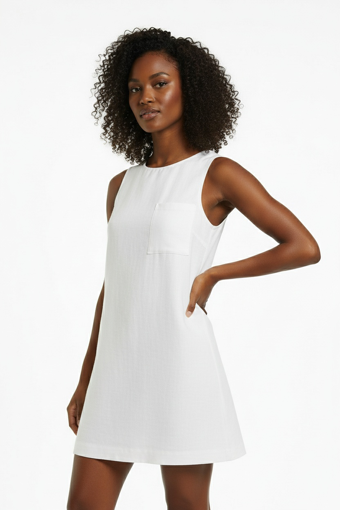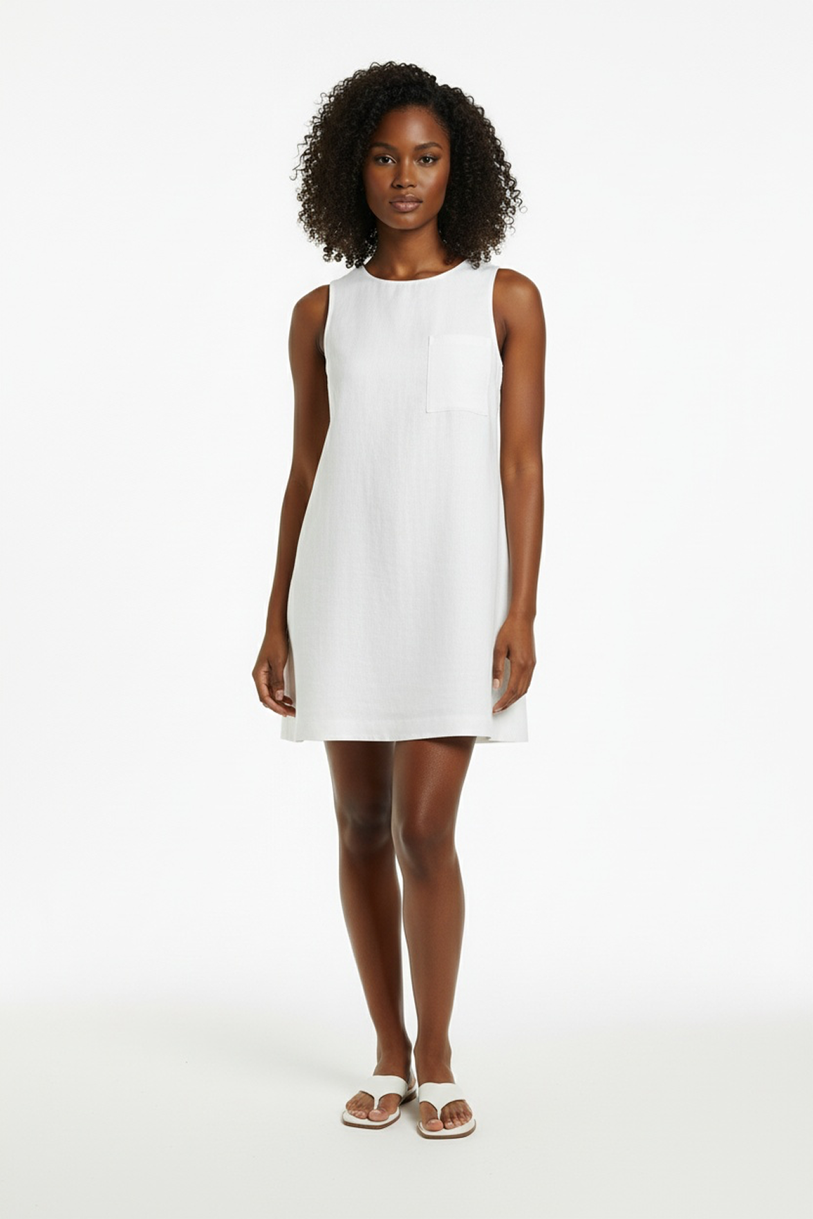 Linen shift dress in white